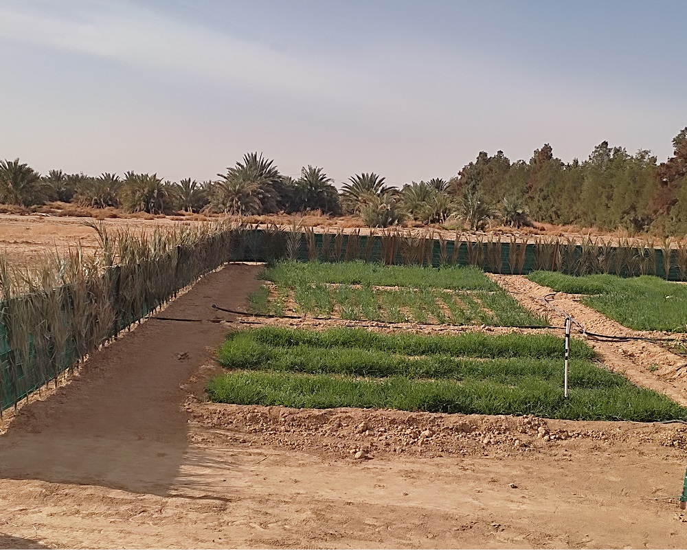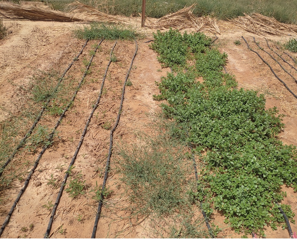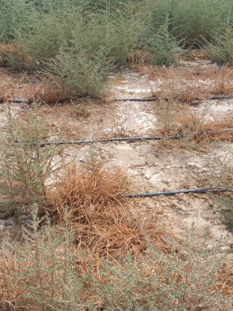 Des espèces tolérantes au sel ont été plantées dans des parcelles de test, avec un système d'irrigation au goutte-à-goutte utilisant une eau salée, sans ajout d'engrais.