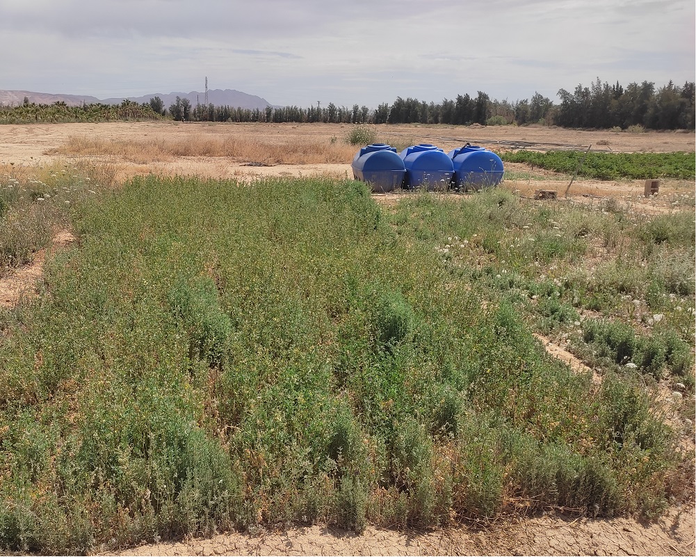 L'expérimentation a démarré en 2023, sur une parcelle non cultivée depuis plusieurs années à cause d'une forte salinité (CE > 5 mS/cm). Cette zone présentait une concentration élevée en sels et sodium, à différentes profondeurs (jusqu'à 45 cm).