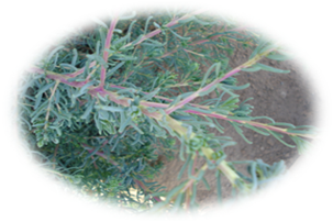 Les feuilles sont charnues sessiles, étroites, noircissant en séchant. Les fleurs sont petites ,vertes et se trouvent à l'aisselle des feuilles (OZENDA ,1991).