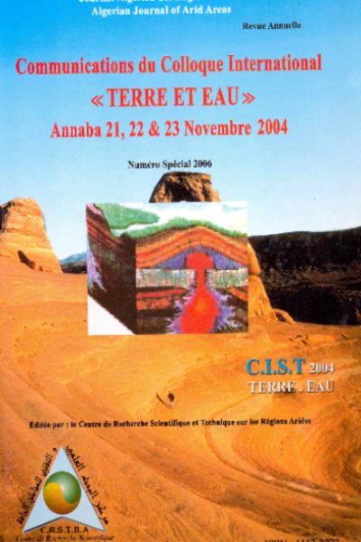 | Géochimie et minéralogie des sols et des saumures des sebkhas dans lécosystème désertique. Exemple de la cuvette de Ouargla, Sahara algérien Belhadj, HAMDI-AISSA. Vincent, VALLES. Alain, AVENTURIER. Olivier, RIBOLZI | PS | 18 | |